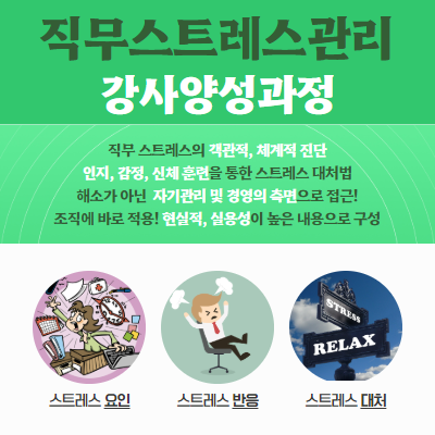 <직무스트레스관리 강사양성과정> 수료시, 강의 PPT 제공 및 스트레스 진단지(1부 4,000원) 구매자격 부여