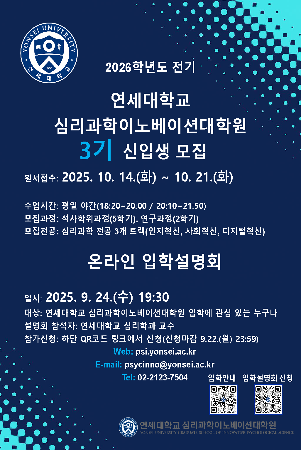 연세대 심리학과 대학원 석사학위과정(야간) 수강생 모집